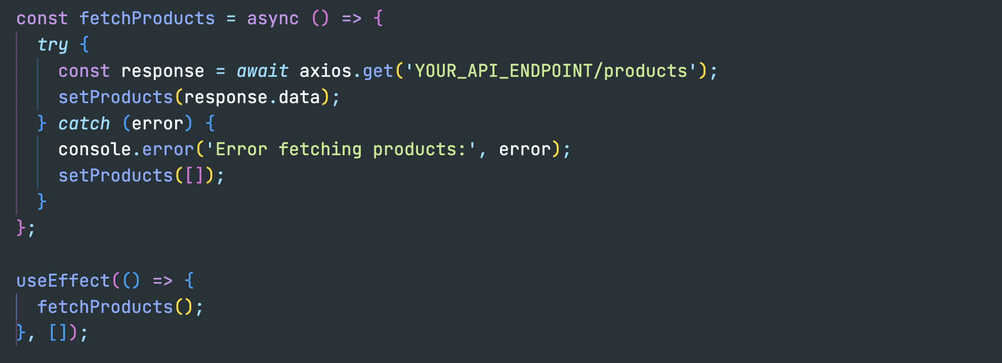Example of fetching products using Axios: